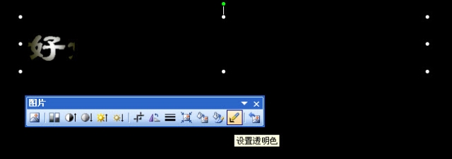 這一步可是出現“探照燈”效果的關鍵呀!可得仔細!選擇“格式”中的“背景”,把背景色設置為黑色,同時把文本框的填充色也設置為黑色。選中文本框,剪切,再點擊“編輯”中的“選擇性粘貼”,選擇“圖片(GIF)”。選中粘貼的圖片,點擊圖片的工具欄上的“設置透明色”按鈕,再點擊圖形的紅色字部分,把紅色字設置成透明色。調整位置讓第一個字正好對準剛才設置好的圓。這時就可以看到與Flash動畫中一模一樣的遮罩效果了(圖3)。