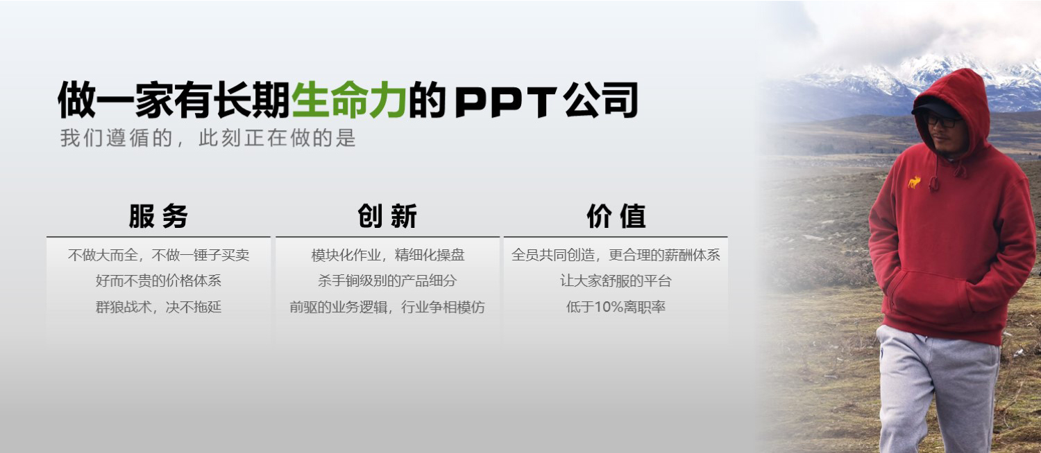 5. 個性化:專業平面設計師量身制作PPT,美觀、大方、創新、適合,帶觀眾進入美妙的視覺意境,并準確體現企業文化內涵。