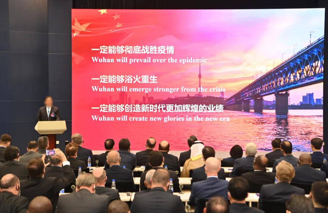 4月12日下午外交部南樓藍廳舉行湖北全球特別推介活動湖北省委常委、武漢市委書記王忠林深情推介武漢,