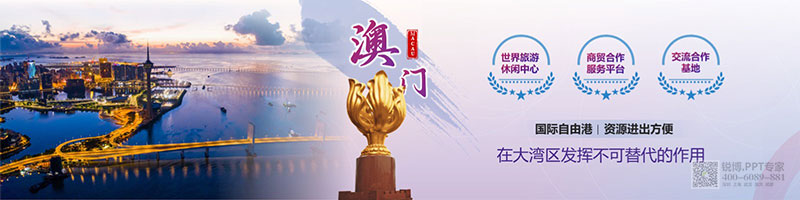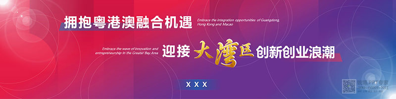 ppt以紅色作為主題色彩,與粵港澳大灣區的活力和熱情相呼應,金色字體作為輔助,增添奢華感和專業度,搭配粵港澳大灣區的場景圖,
